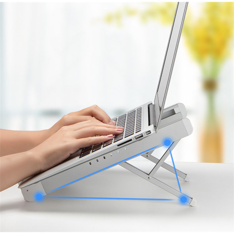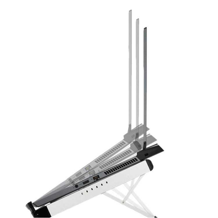 Stu supportu per laptop offre una apertura rapida è senza saldatura di una seconda cù u so designu di cuscinetti scorrevule liscio. Fattu da una lega d'aluminiu durable è esteticamente piacevule, vanta un aspettu elegante. Cù sei altezze regulabili, pudete persunalizà l'angolo chì si adatta à i vostri bisogni, è u robustu supportu triangulare in lega d'aluminiu posteriore assicura stabilità, rendendu a digitazione senza oscillazioni. U baffle regulable accoglie laptops di varii grossi, è pudete sceglie trà dui eleganti opzioni di culore: Neru è biancu.